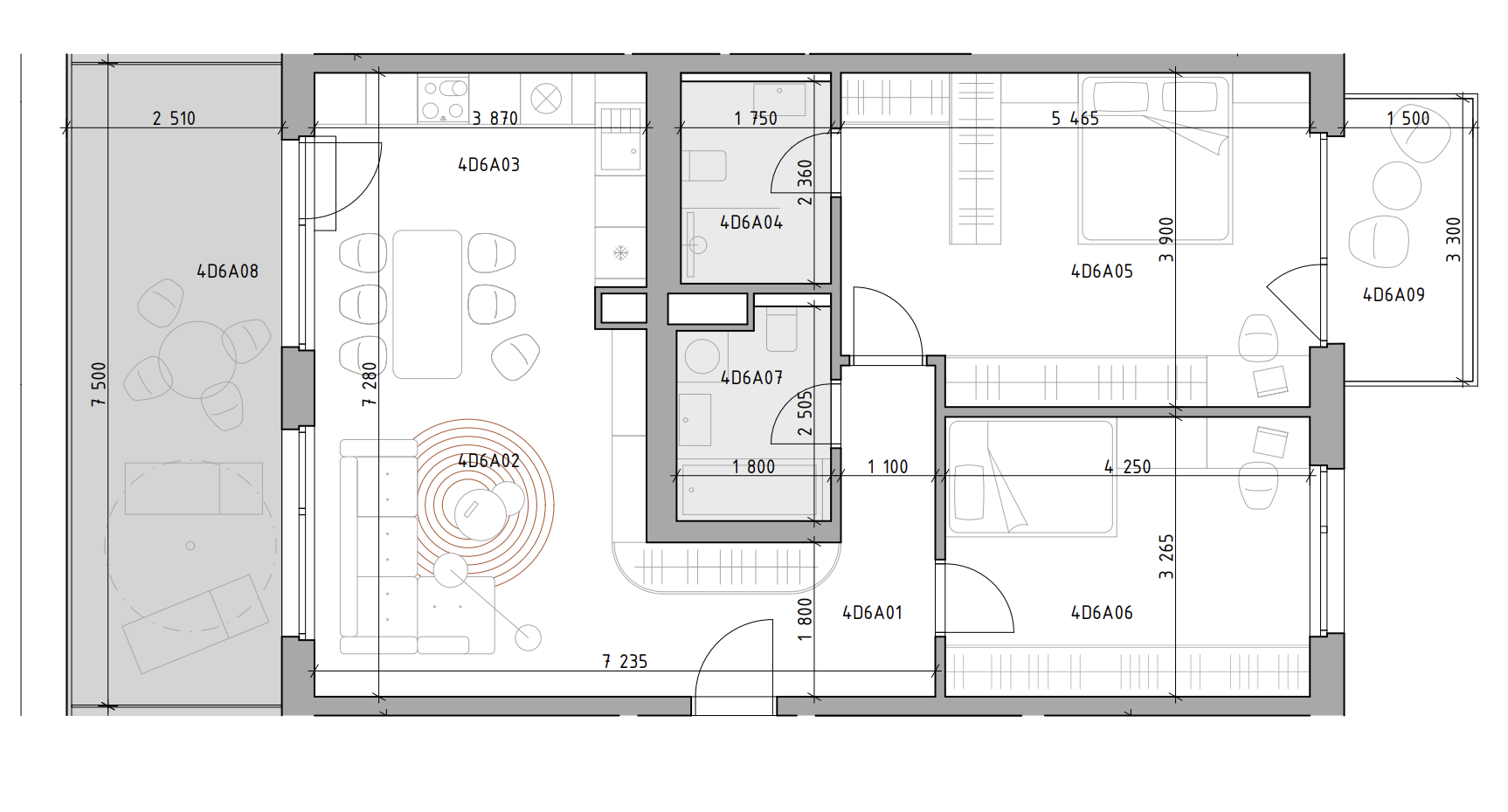 Príprava rozvodov pre chladenie priestoru obývacej izby v cene. V prípade 4-izbových bytov na 5.NP a 6.NP je príprava rozvodov na chladenie všetkých obytných miestností v cene. Interiérové jednotky a exteriérová jednotka nie sú súčasťou štandardného vybavenia bytu. Umiestnenie exteriérovej jednotky je na lódžii, balkóne, terase alebo streche podľa projektovej dokumentácie.